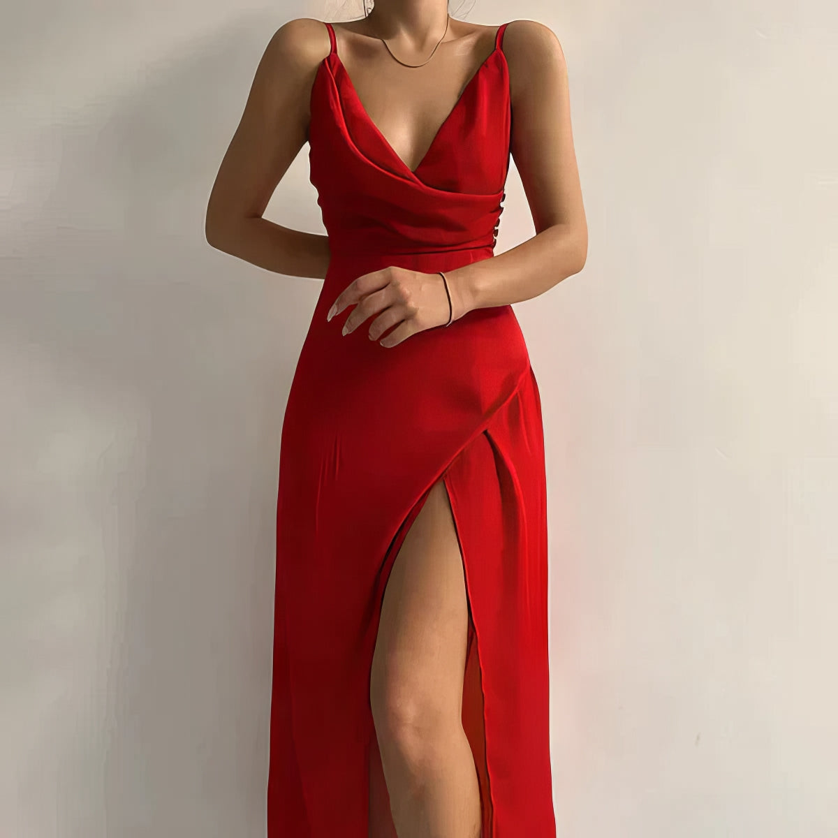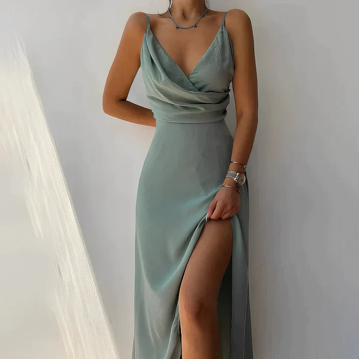Objevte vrchol elegance a sofistikovanosti s šaty Emery, kouskem navrženým tak, aby zvýraznil vaši přirozenou krásu a posílil vaše sebevědomí. Jejich design zahrnuje drapovaný výstřih s jemnými ramínky, přiléhavou siluetu, která zvýrazňuje vaši postavu, a boční rozparek, který dodává nádech sensuality.