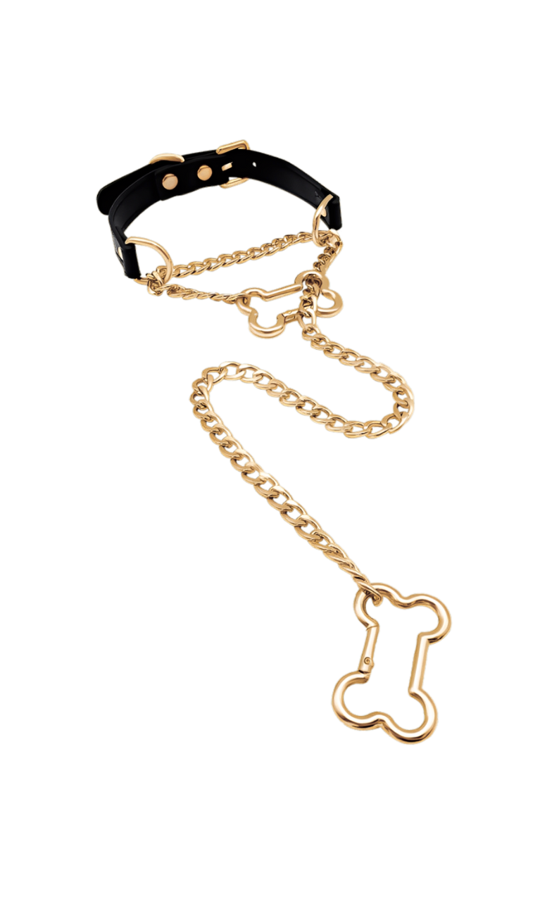 LoveChains™ - Kožený obojek s řetězem na kost