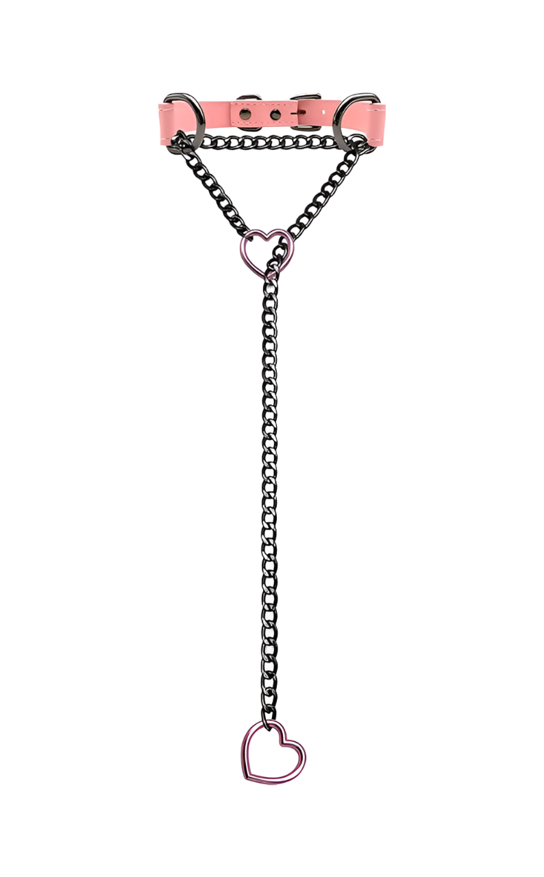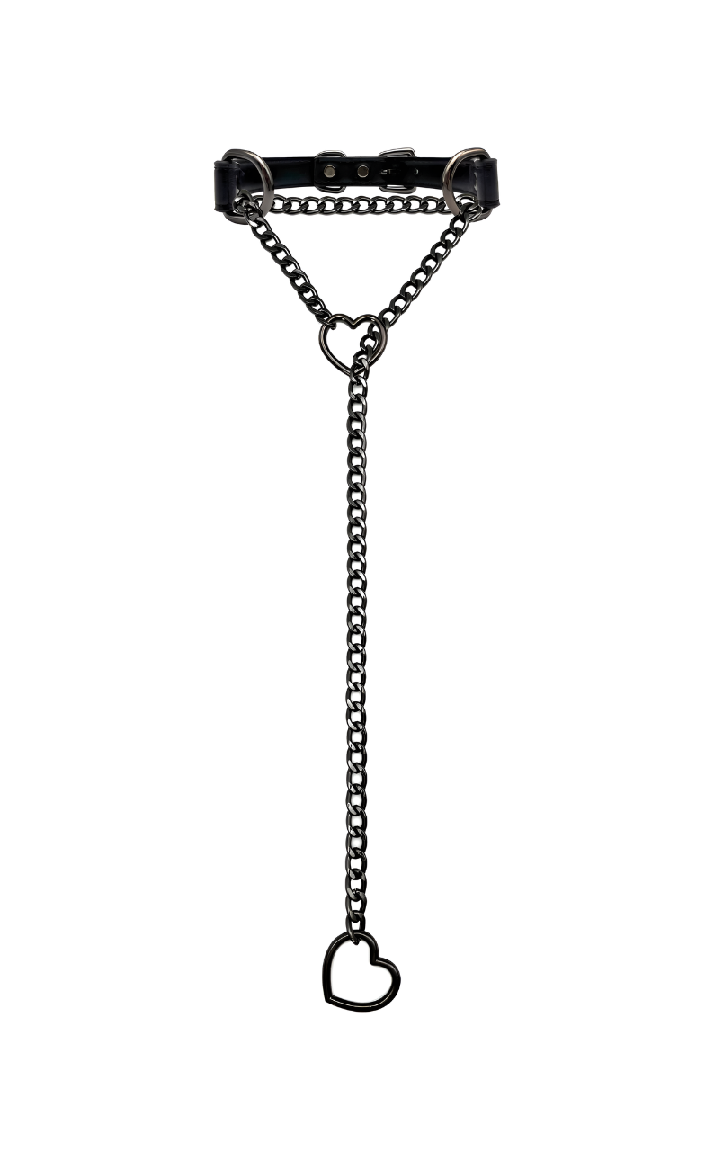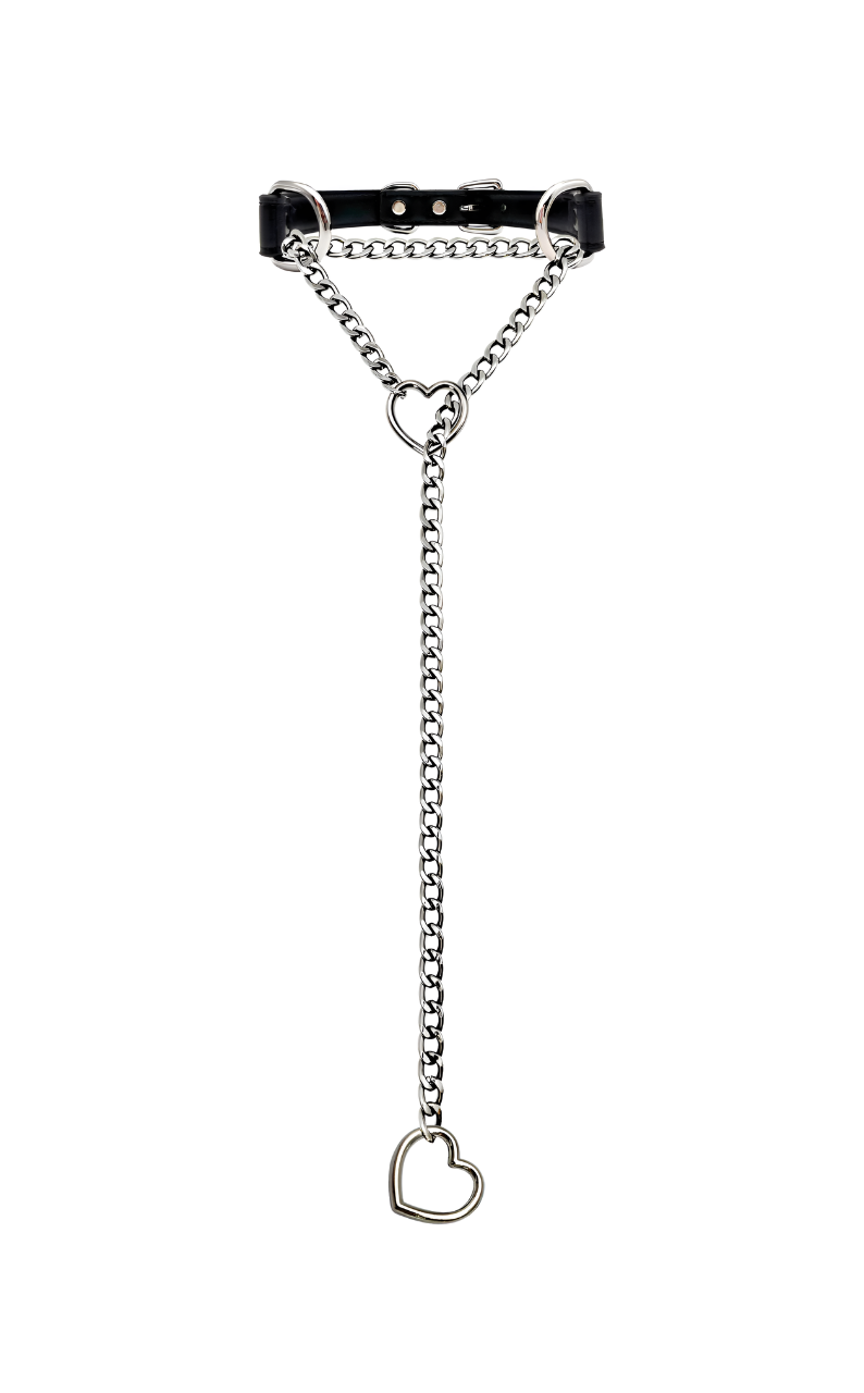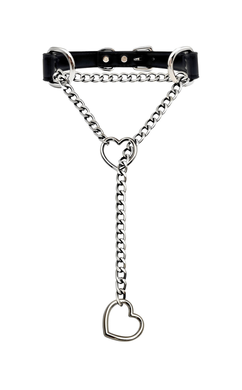 LoveChains™ - Kožený obojek s řetízkem ve tvaru srdce
