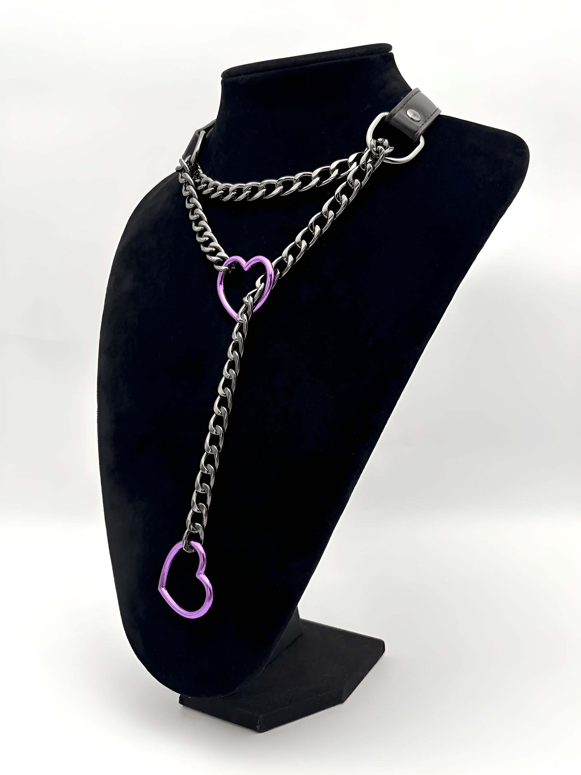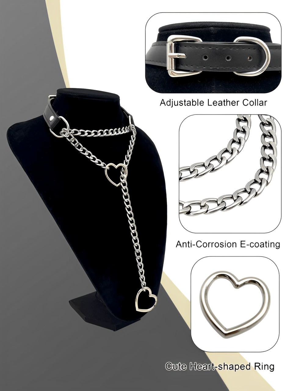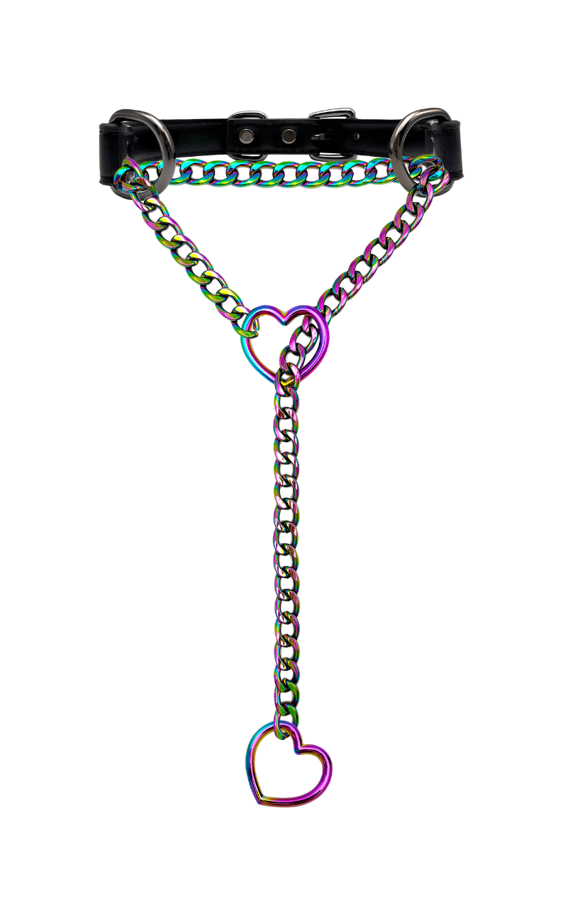 LoveChains™ - Kožený obojek s řetízkem ve tvaru srdce